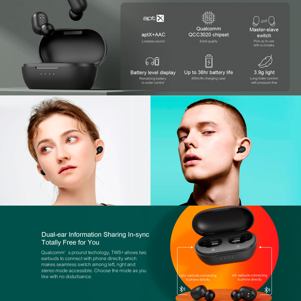Funções principais: Controle tátil, APX+AAC Lossless Sound, Master-slave Switch, assistente de voz