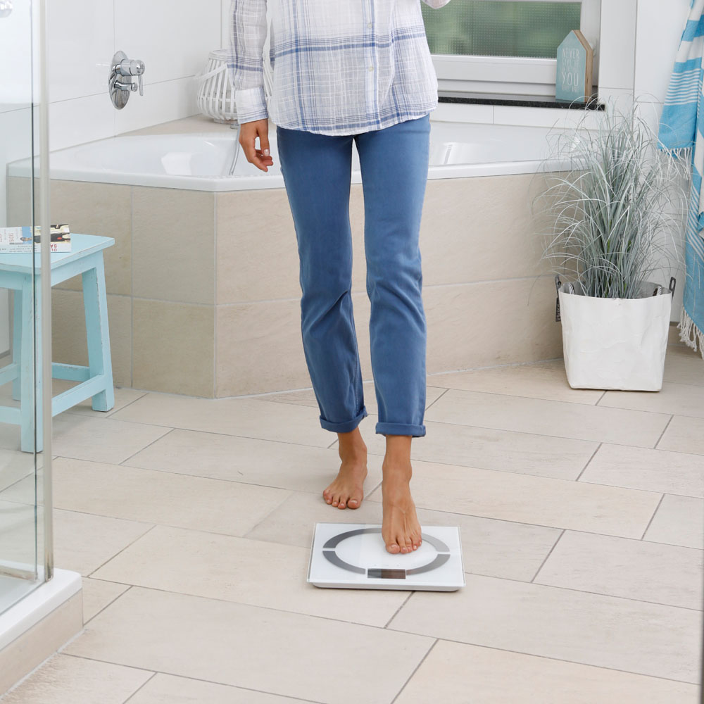 Medição do peso, gordura corporal, água corporal, percentagem muscular e peso ósseo: