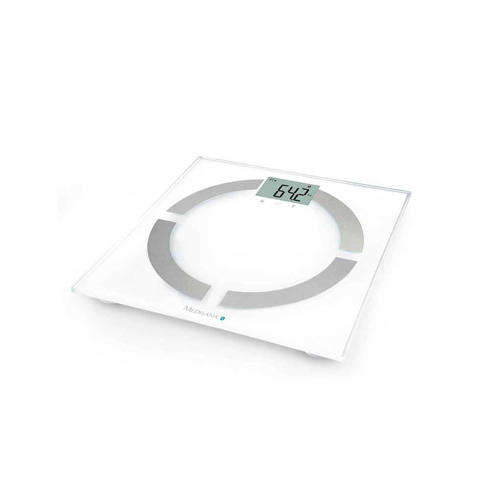 Medisana BS 444 mede mais do que apenas o peso corporal. Deteta, através de elétrodos de aço inoxidável altamente sensíveis, a sua gordura corporal, água e massa muscular. A interação de todos estes valores é um elemento crucial para alcançar os objetivos de peso de uma forma saudável, juntamente com programas de fitness eficientes. O grande ecrã LCD é fácil de ler mesmo em más condições de iluminação. Medisana BS 444 não só fornece medições para até oito utilizadores, como também pode transmiti-las por Bluetooth para a aplicação VitaDock+ em dispositivos iOS e Android e, em seguida, para VitaDock Online.