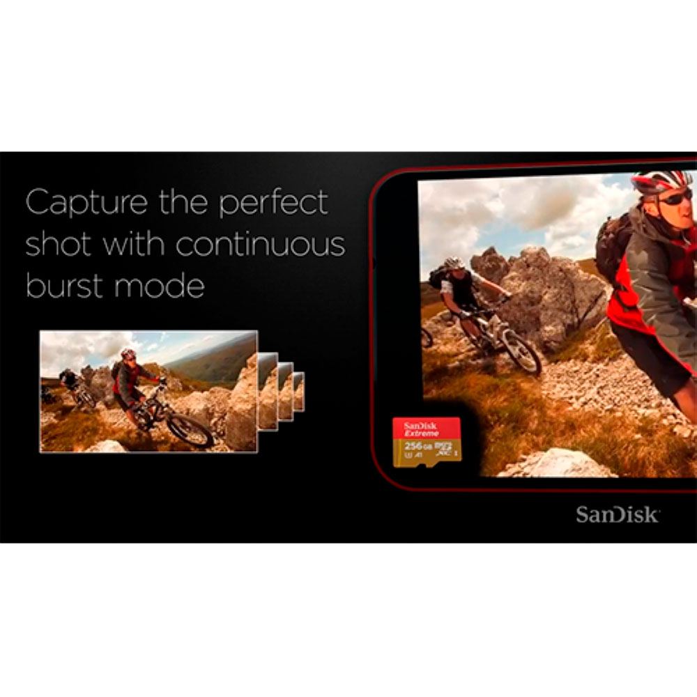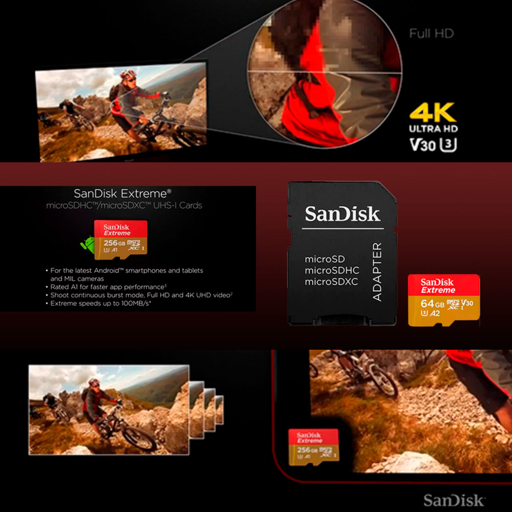 Ideal para gravação de aventuras externas, viagens de fim de semana ou eventos esportivos sem perder quadros. O cartão microSD SanDisk Extreme permite que você capture vídeo 4K UHD e Full HD ininterrupto com suas classificações de Velocidade UHS Classe 3 (U3) e Velocidade de Vídeo Classe 30 (V30).