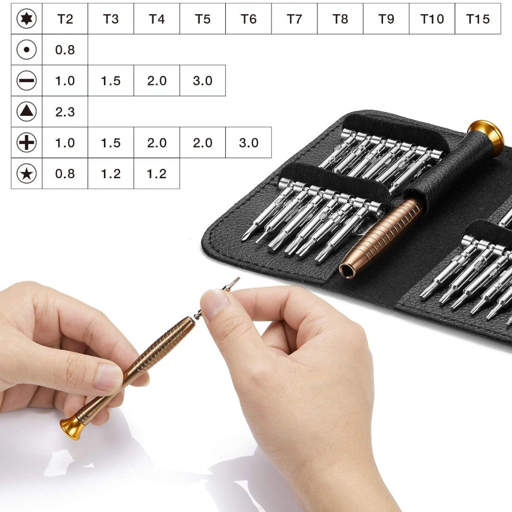 Paddy Metz-Tessy-25 é um conjunto de chave de fenda de precisão de alta qualidade e alça antiestática para atender a muitas necessidades de montagem ou desmontagem. Este conjunto de mini-chaves de fendas de precisão são as ferramentas de reparo perfeitas para laptop, óculos, relógio, telefone celular, iPad, iPhone, etc. Fácil de trocar e fixar cada cabeça de parafuso no suporte, Extremamente portátil e muito prático com devido ao seu tamanho.