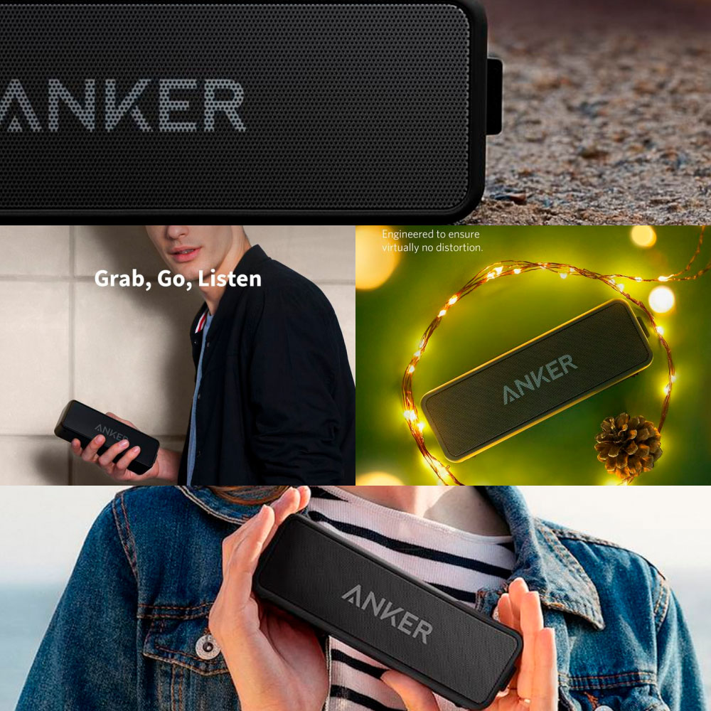 SoundCore 2 altifalante bluetooth portátil com som estéreo de 12 W, Bluetooth 5, BassUp, IPX7 à prova d'água, tempo de reprodução 24 horas, emparelhamento estéreo sem fio, altifalante para casa, ao ar livre e viagem.
