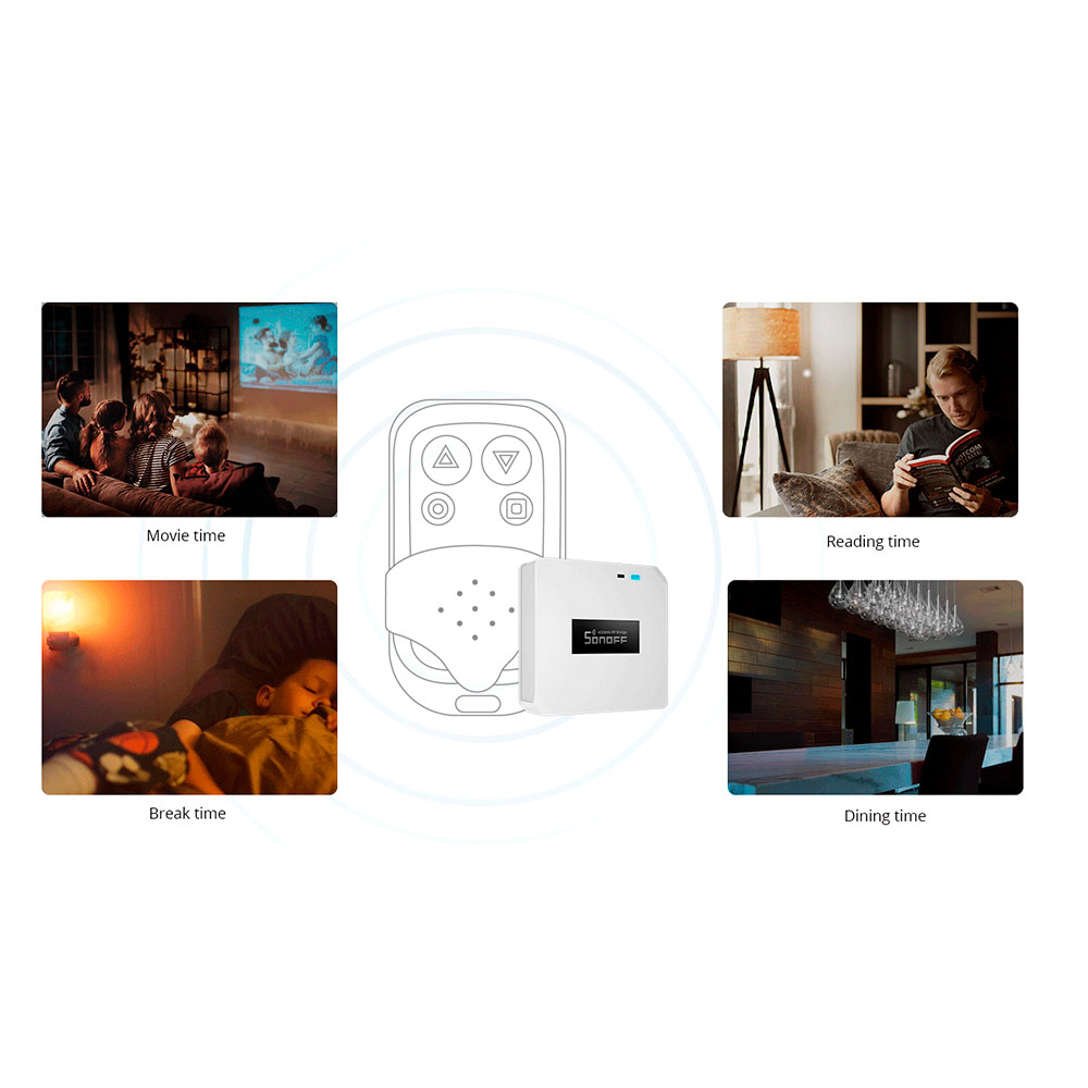 A "ponte" suporta a adição de dispositivos RF 433MHz até 64 lançados pela SONOFF, como o sensor de movimento PIR3-RF PIR e o sensor de porta/janela sem fio DW2-RF , tornando sua casa mais inteligente.