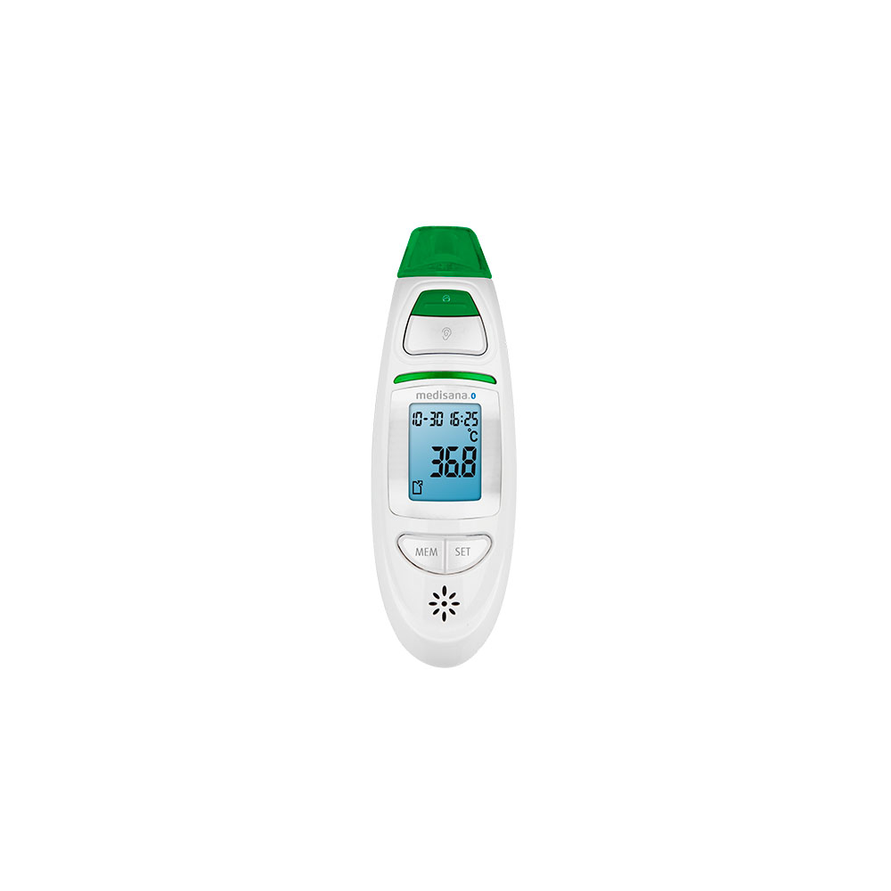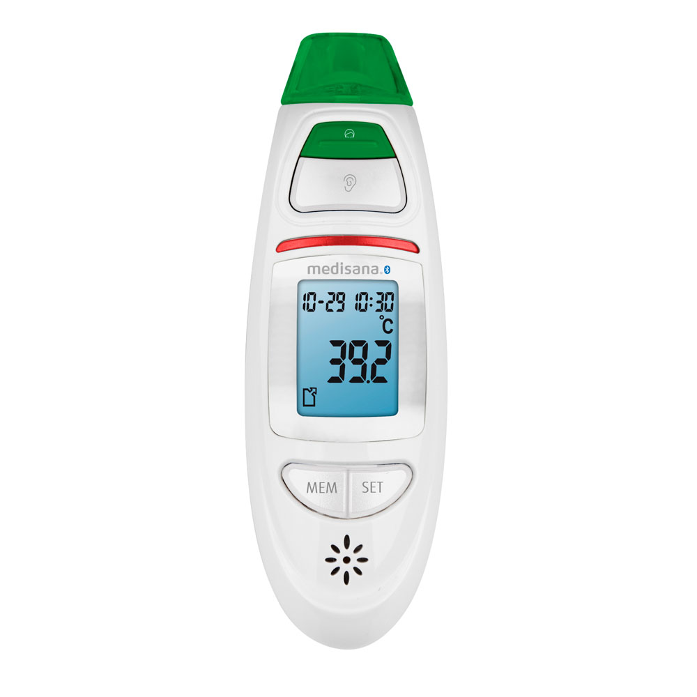 Medisana TM 750 é um termômetro multifuncional que você pode fazer medições precisas da temperatura corporal na testa ou no ouvido em poucos segundos. Além de medir a temperatura corporal, o termômetro também pode ser usado para medir a temperatura de um objeto, por exemplo, a temperatura ambiente, a temperatura de líquidos ou de superfícies. Dependendo da temperatura, um alarme óptico de febre também é indicado por uma cor ao medir.